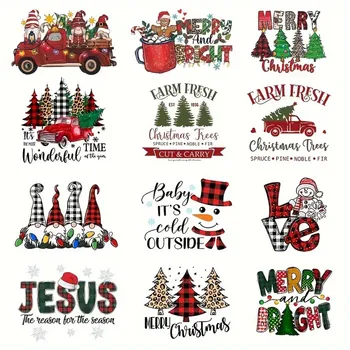 Pegatinas navideñas de transferencia de calor con varios hierros con diseños festivos adecuados para decoraciones lavables en la ropa